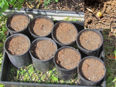 8 potted up yacon rhizomes were brought out from their hidey hole under the house, placed in a sunny spot with their first drenching of water..
