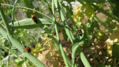 I noticed the other day that the aphids have moved back into the patch attacking the daikon radish.. I was going to spray them with some soap spray but decided against it when I noticed how many lady beetles were on the plant..