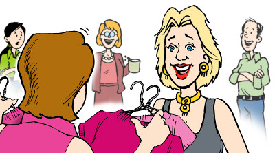 It looked as though today was going to be no different. Hanna breezed in clutching a bulging shopping bag. 'Here we go again,' Sally thought to herself miserably. 'The latest new wonder purchase. Why is it I never seem to be able to find any bargains?' 'I have to share this with you!' Hanna said with a huge smile. 'Now you know how much I love pink,' she giggled. 'Check these out! I picked up FOUR new pink tops for $98, reduced from $250! Aren't they a steal!'